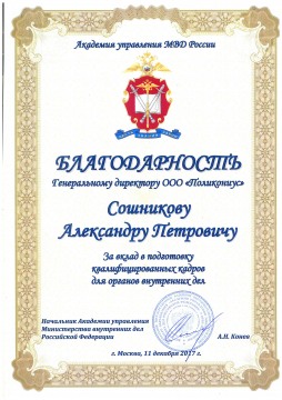 - Диплом о профессиональной переподготовке по программе: «Проведение психофизиологического обследования с применением полиграфа» АНО ДПО «ЦПП» Серия ПП №64333 от 18.12.2015г.