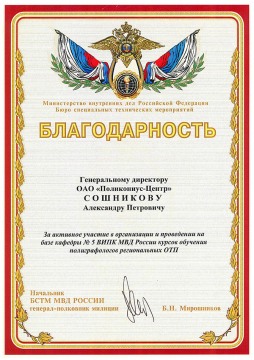 - Удостоверение о повышении квалификации АНО ДПО «ЦПП» в рамках 15 ежегодного семинара по теме: «Основные методические принципы доказательной полиграфологии» № 4574656 от18 июня 2022 г.