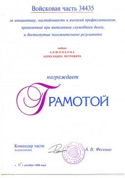 - Диплом Московского техникума Автоматики и Телемеханики о присвоении квалификации «техник-электрик» по специальности «электронные вычислительные машины, приборы и устройства», 1974г.