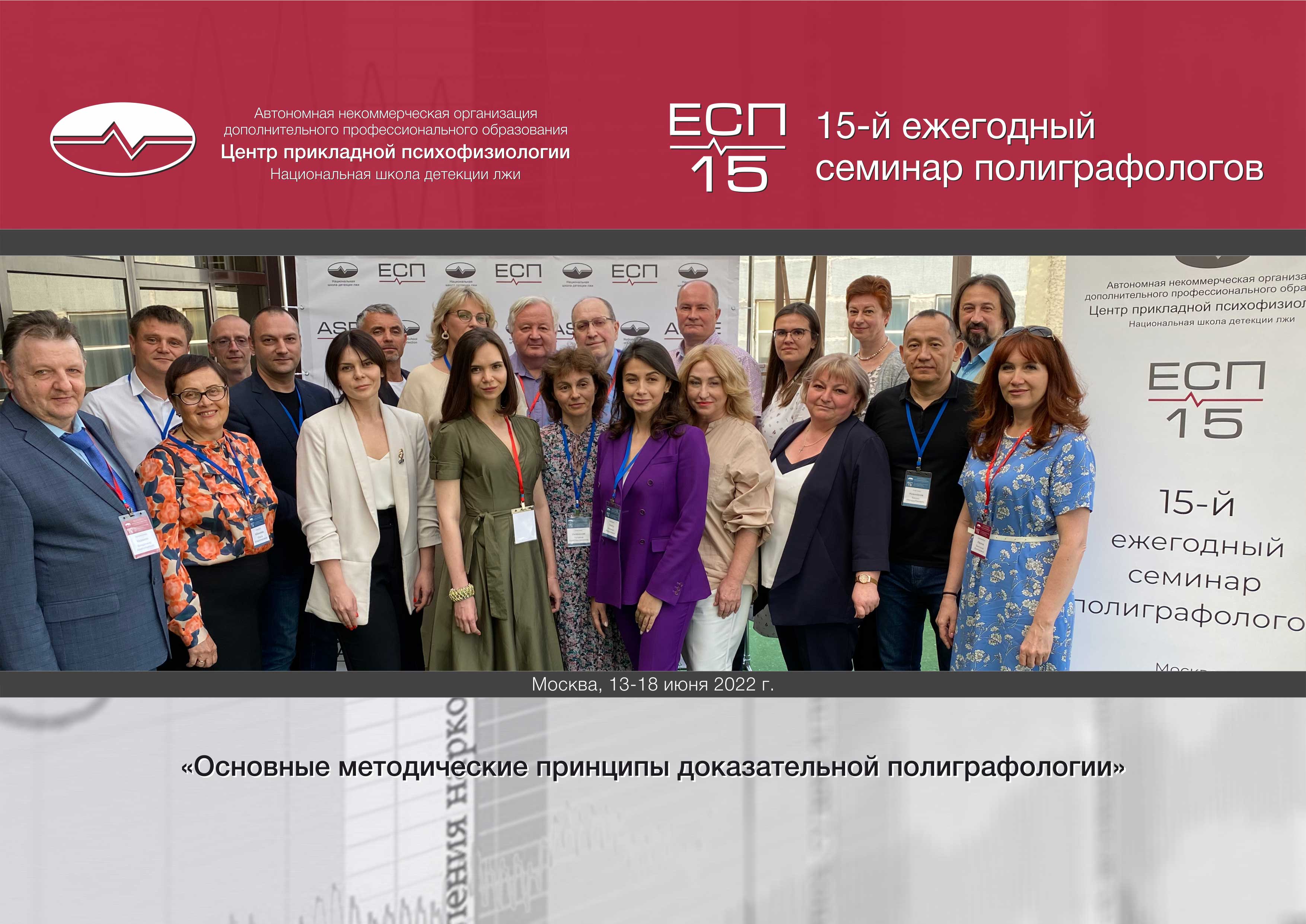 Уважаемые коллеги! Приглашаем вас принять участие в 15-м ежегодном семинаре полиграфологов (ЕСП 15), который состоится в период с 13 по 18 июня 2022 года.