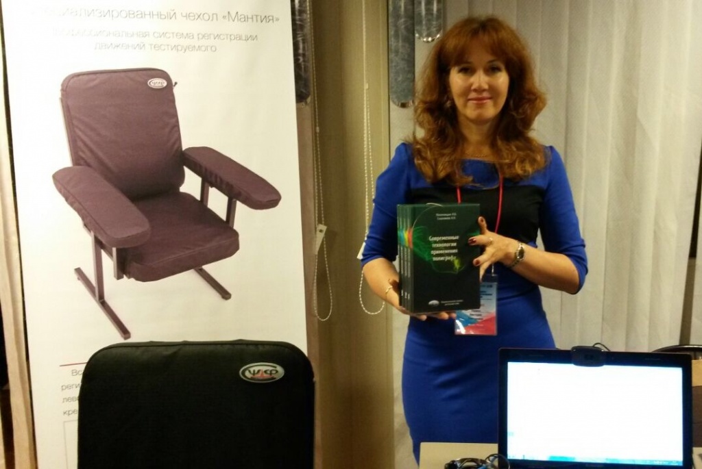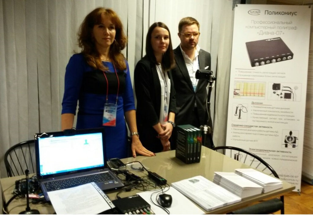 Так же в рамках выставочных мероприятий Конференции был организован выставочный стенд и представлена продукция наших партнёров ООО «Поликониус»: профессинальный компьютерный полигаф «Диана-07», компьютерные системы невербальной оценки поведения человека «Диана-Видео» в мобильном и стационарном исполнении, специализированное кресло тестируемого «СКО 02» со специализированным чехлом «Мантия-2+». Посетители выставки смогли ознакомиться с 4-х томным Руководством полиграфологов «Современные технологии применения полиграфа» и условиями вступления в Центр поддержки полиграфологов.