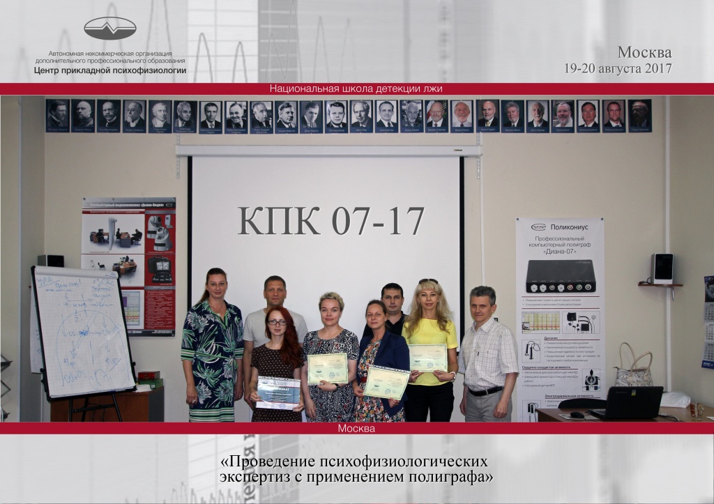 С 19 по 20 августа 2017 года в АНО ДПО «ЦПП» (НШДЛ) состоялся авторский курс повышения квалификации Комиссаровой Я.В. на тему: «Проведение психофизиологических экспертиз с применением полиграфа».