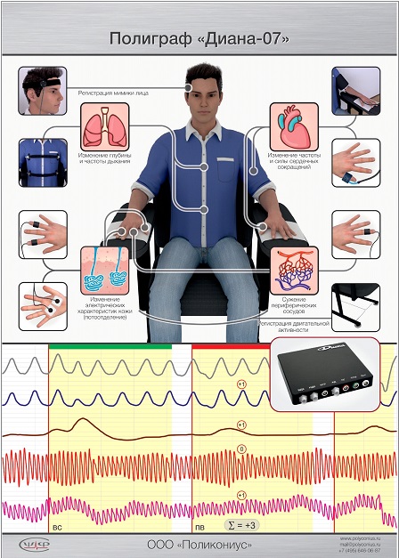 Рис. 1. Плакат с наглядным примером регистрации физиологических показателей на полиграфе «Диана-07»